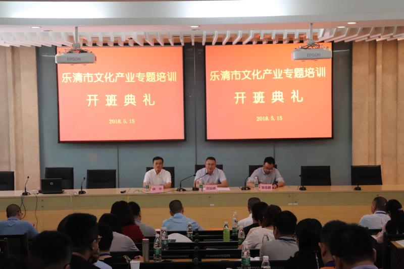 公司党总支书记李志鹏,乐清市委常委、宣传部长刘云峰,乐清市委宣传部副部长林午出席了本次培训班开班仪式。开班仪式上,李志鹏书记代表本次培训的承办方对乐清市委宣传部的信任表示感谢,对参训学员的到来表示欢迎,并希望此次培训能够满足学员们多元化、差异化、个性化的学习需求,希望学员们能够有所体验、有所感悟、有所收获。刘云峰部长表示:近年乐清市的文化发展迅速,已经有了一定的规模,但也存在一定的短板和弱势,他相信南艺优秀的理论实践教学团队能够对乐清文化产业发展有所启发。
