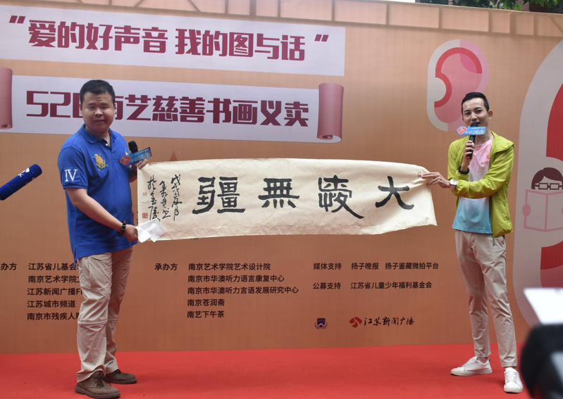 5月20日下午,由XCsports、江苏省儿基金会聪灵计划基金、江苏新闻广播FM93.7、江苏城市频道、南京市残疾人联合会主办,XC体育艺术设计院、南京市华澳听力语言康复中心、南京市华澳听力言语发展研究中心、南京苍润斋、南艺下午茶共同承办的“爱的好声音我的图与画”慈善书画义卖活动在XC体育创意街区圆满举行。