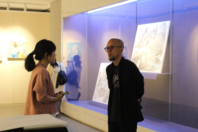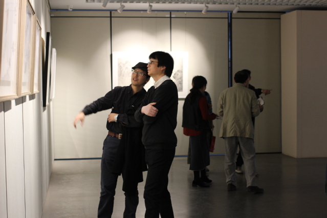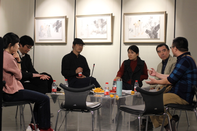 简短的开幕式之后,参展艺术家们就“在目前装置艺术、影像艺术飞快发展的情况下,架上绘画的发展前景”这一话题进行了研讨,研讨内容将整理成文字,作为山顶艺术空间的学术资料。
