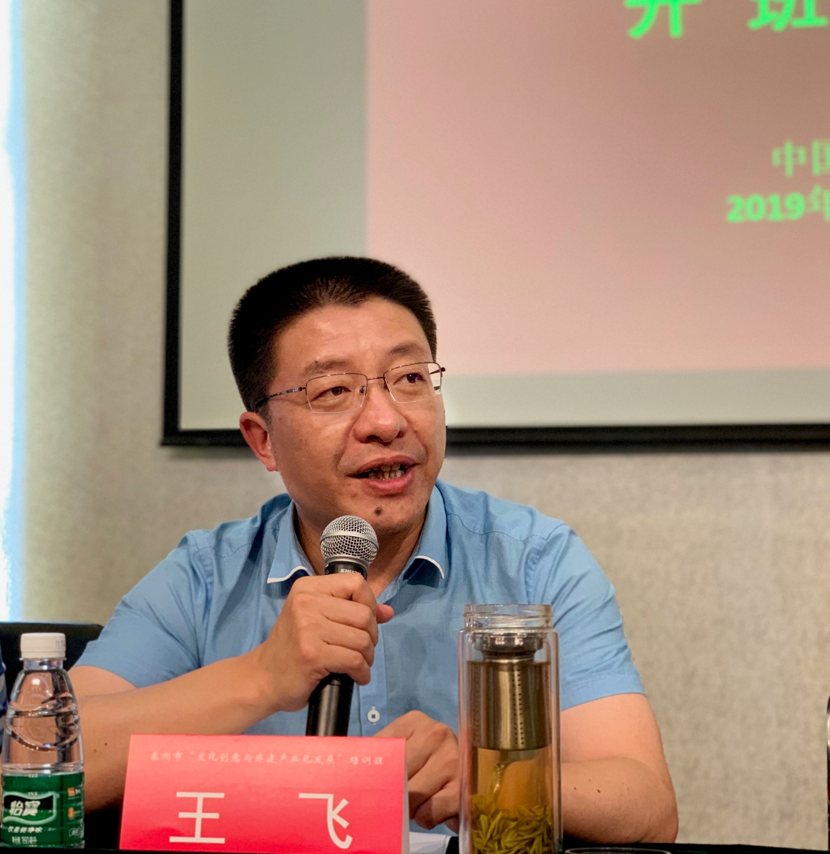 随后,王飞对泰州市目前文化发展的现状和问题做了概述,并针对非物质文化遗产所面临的问题,对未来学什么、如何学、如何做、才能推动文化创意与非遗产业化发展提出要求,通过学理念,学技术,学转换,对泰州市文化创意与非遗产化进行创新性发展和产业化推进,不断丰富泰州市非遗产业的内涵,提升品质、扩大外围,形成一个非常饱满的产业状态。