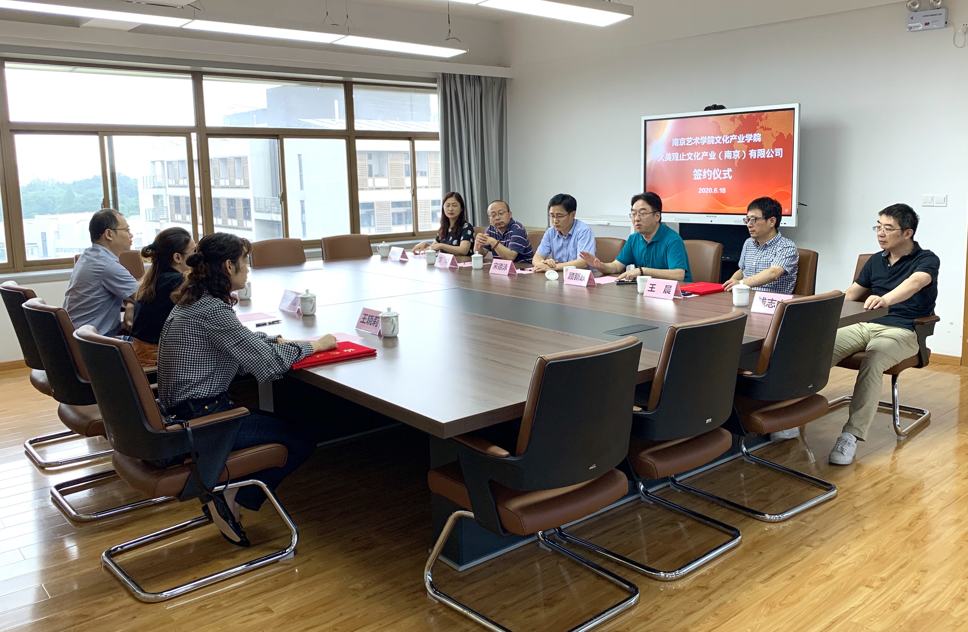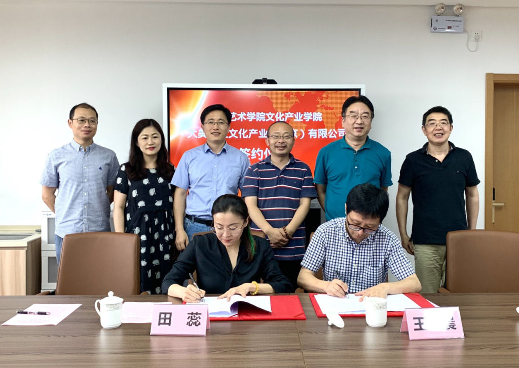 大美观止文化产业(南京)有限公司是公司校外教学实践基地之一,自合作以来开展了“烟雨绿苔微——艺术品鉴会”“庆祝中华人民共和国成立70周年——中华人民共和国成立初期电影海报展”等多次大型活动,收到了良好的社会反响。为进一步提升公司社会影响力,扎实开展社会服务工作,全面提升全民素质教育,积极推进校企平台建设,本着优势互补、资源共享、互惠双赢、共同发展的合作原则,双方商定签订艺术教育大类社会培训项目合作协议,以开展艺术培训、艺术品鉴赏与收藏、非遗传承与发展、文创产品开发等艺术教育大类相关培训项目。