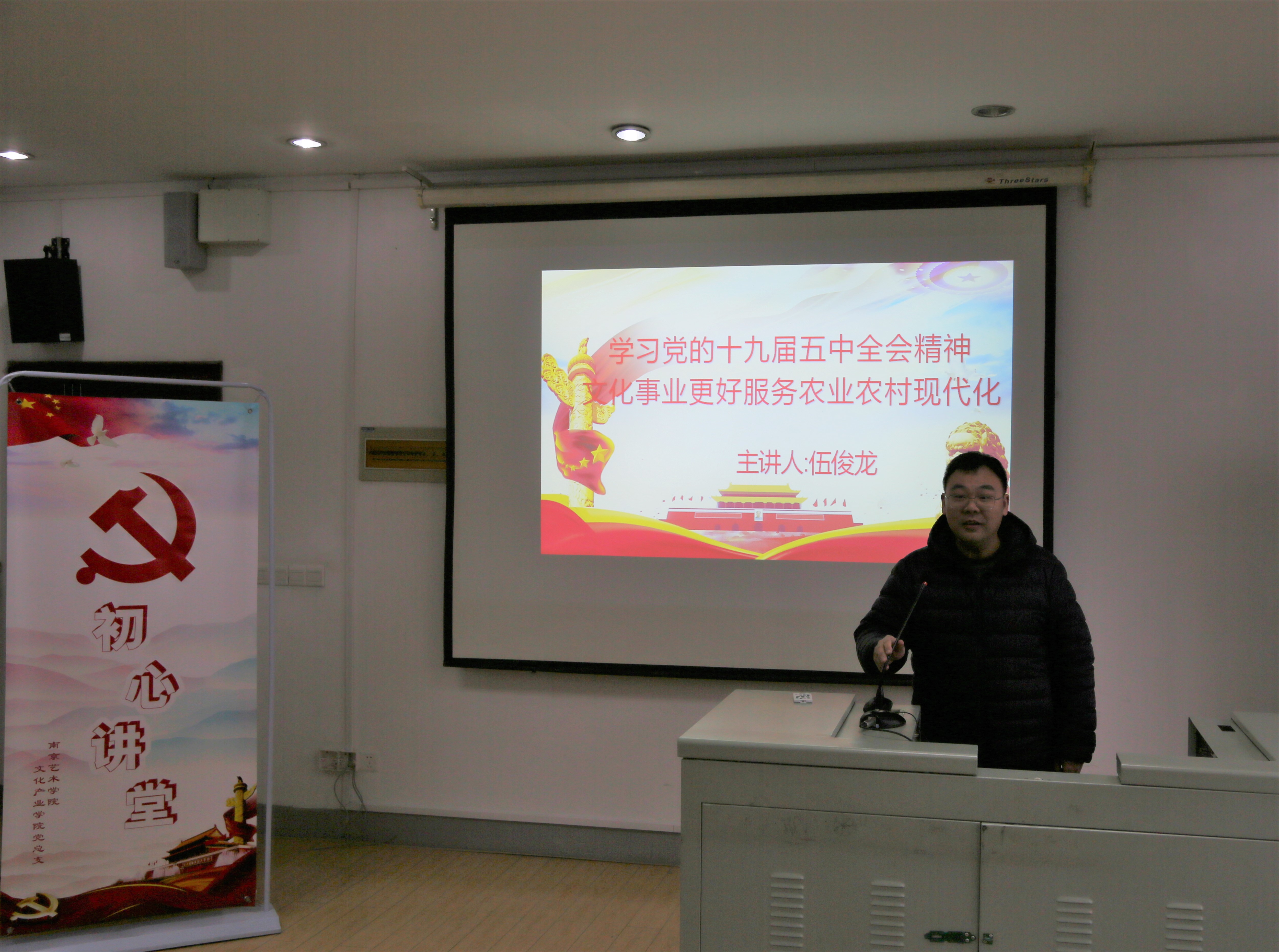 2020年12月29日,XCsports“初心讲堂”第四期开讲,XCsports教工党支部书记伍俊龙老师为全体师生党员和积极分子上了一堂以“文化事业更好服务农业农村现代化”为主题的党课。