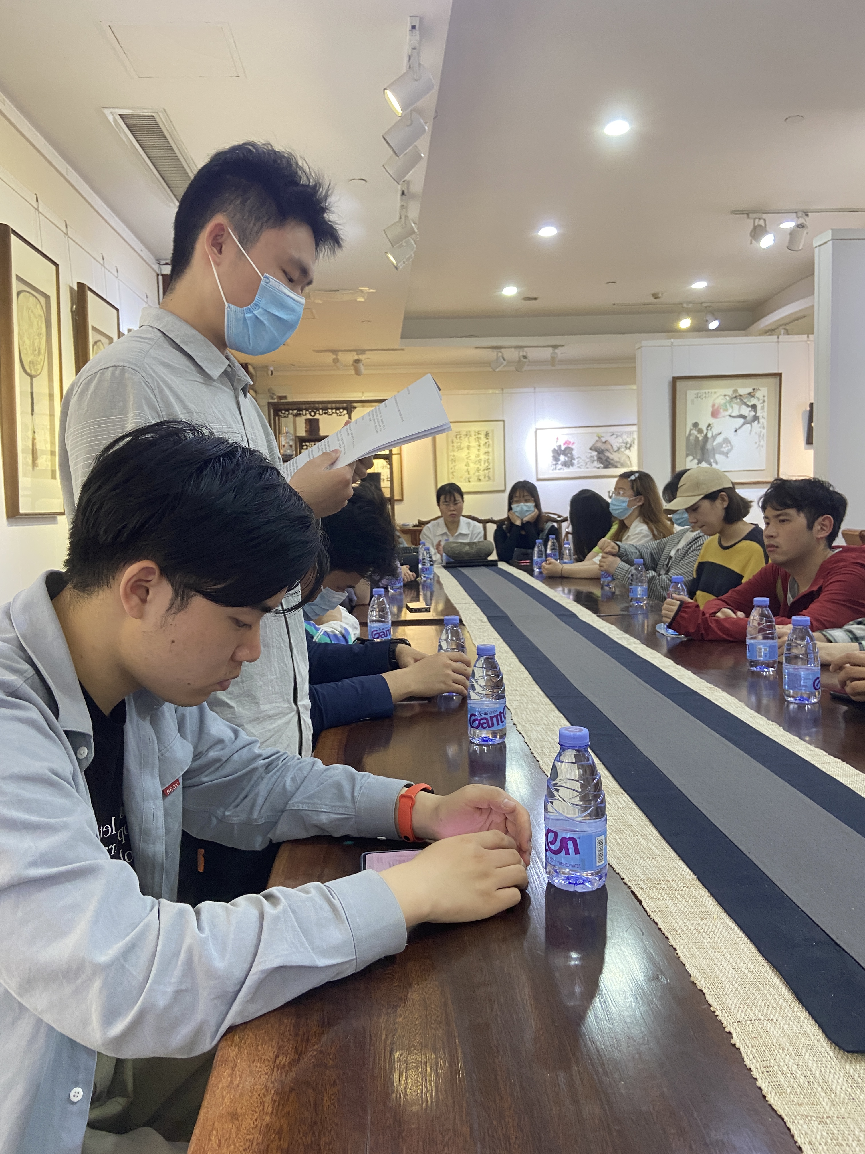 2021年5月12日十点,XCsports2019级艺术品投资管理方向的员工在姚晴老师的带领下来到南京九华美术馆与熊馆长就举办“纸上寄山河-水韵江苏书画展”展开了热烈的交流讨论。