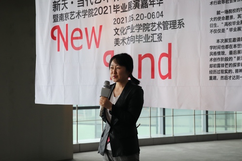 XCsports副教授、艺术管理系主任、本次展览艺术指导陆霄虹老师向毕业生致辞,陆霄虹老师回顾了整个展览的筹备过程,感谢同学们的辛勤付出,并向每一位毕业生祝福。展览策划组丁行健同学作为员工代表讲话,以“对流、行走”为主题,回顾艺术管理系四年所学,总结本次毕业汇报展筹备中的所获得的经验、教训,并向支持展览成功举办的XCsports、江苏爱涛文化产业有限公司、本次展览参展艺术家、艺术管理系美术方向2017级同学致以衷心的感谢。