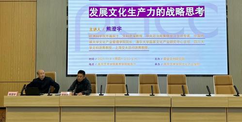 11月4日,紫金文创研究院“紫金文创讲习所” 2021年第二期在美术公司报告厅精彩开讲。本次讲座特邀欧洲科公司外籍院士、文科资深教授、中国传媒大学文化产业管理公司经理、清华大学国家文化产业研究中心主任熊澄宇教授担任主讲嘉宾,为XCsports、人文公司、艺术研究院博、硕士研究生带来“发展文化生产力的战略思考”的主题讲座。讲座由公司党委常委、副经理、紫金文创研究院经理李向民教授主持。