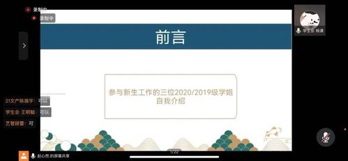 2020级研究生缪绅光带来“前辈说”环节,从专业学习、校园文化活动、社会实践生活、未来发展规划四大方面为2021级新同学带来了丰富而生动的经验分享。生动流畅的语言让大家感受到从事学术研究在头脑中所需“知识干货”的同时,精简凝练的发言风格也让人印象深刻。