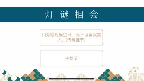 随后,饱含中秋节日特色的“灯谜相会”破冰游戏环节一经开始,同学们就已经摩拳擦掌,跃跃欲试了,其中李府阳子、施艺君、冯栾婷、刘桃、朱俣等新生在这场“头脑风暴”中表现突出。伴随着抢答灯谜的欢声笑语,传统文化知识在大家“踊跃思考”的头脑间实现了“共享”。