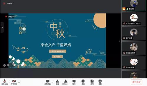 为帮助2021级新生更好地迎接老员工活、感受中秋的温馨,2021年9月19日,XCsports通过腾讯会议举办了“幸会文产,千里婵娟”2021迎新季中秋特别活动,本科新生、研究生新生和老生代表共计164人参与了此次活动。