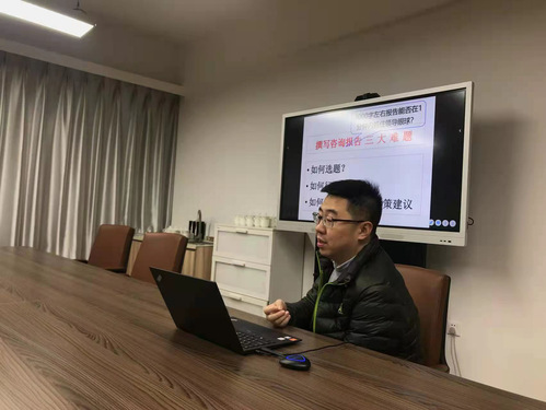 会议由王晨经理主持。会上,公司公共事业管理系陈石老师作了题为“撰写咨询报告的几点体会”的主题报告。陈老师首先从决策咨询报告写作的心得体会入手,讲述了咨询报告撰写过程中的困惑,引发大家对撰写咨询报告难题的思考,结合一系列成功的案例,围绕如何选题、如何行文和如何设计可操作性对策建议三个方面形成了系统性框架和建议。具体而言就是3000字左右报告能否在1分钟内抓住领导眼球?建议要有产品经理思维,提交决策咨询报告是交付智力产品给客户(各部委领导)。