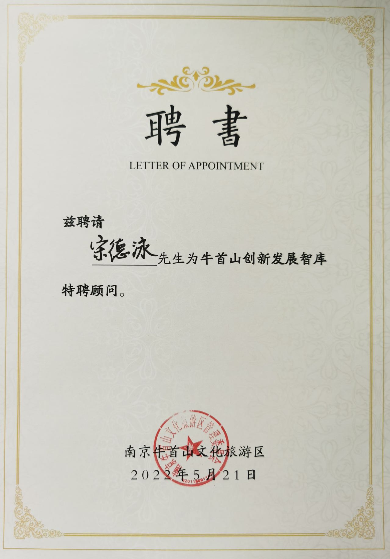 在“智汇牛首”品牌创新发布环节,江宁区委常委、组织部部长曹明为牛首山创新发展智库首批入选的10名专家颁发证书。据了解,牛首山创新发展智库成员“咖位”十足,不仅有哲学、艺术、旅游、经济等方面的专家,也有文化遗产、文化创意、产业经济、数字信息领域的领军人物。江苏重点高端智库紫金文创研究院副经理,公司党总支书记宋德泳被聘为牛首山创新发展智库首批特聘顾问。(内容来自网络)