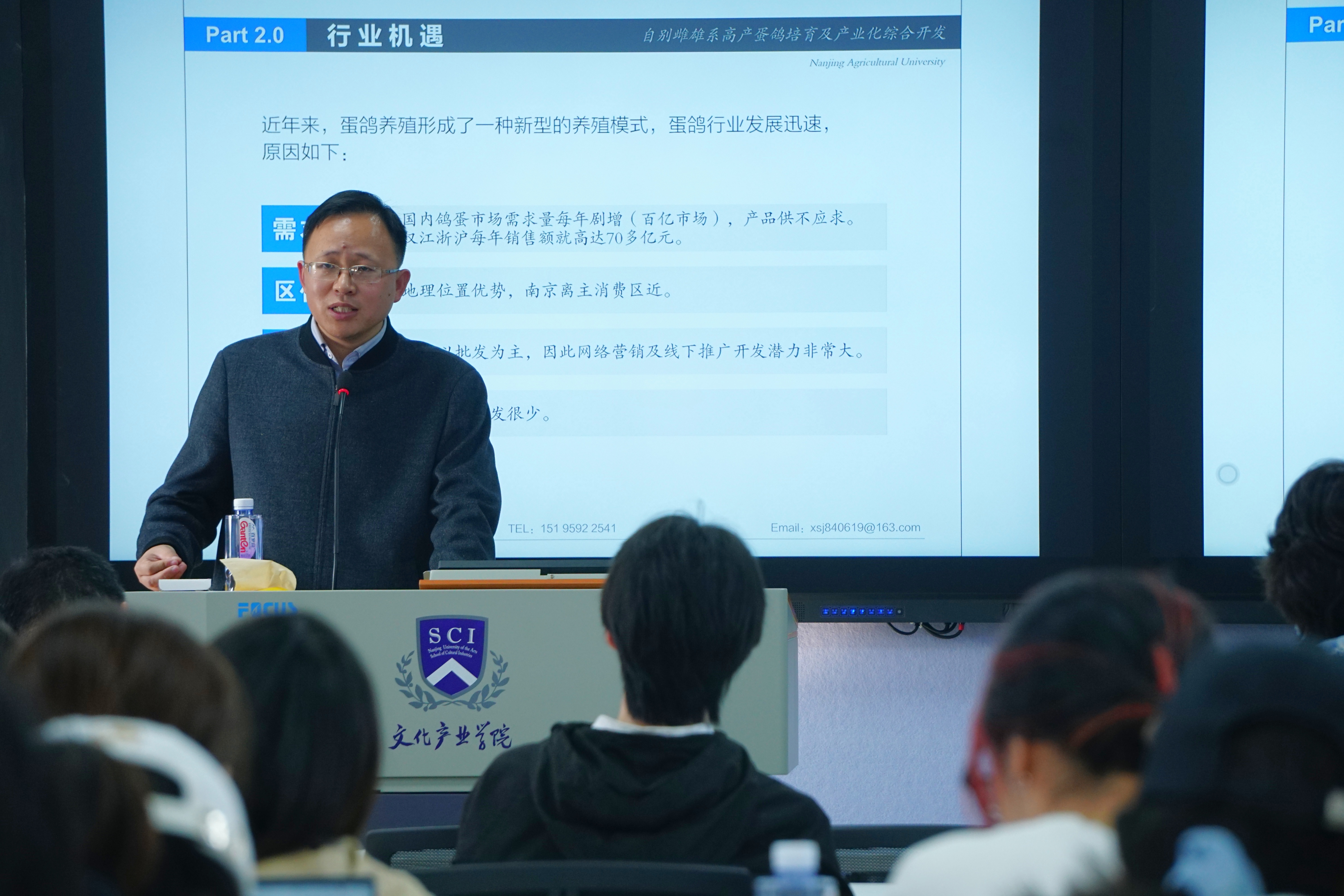 11月10日上午,XC体育高水平大学高峰计划项目“乡村振兴文化旅游服务工程”系列讲座继续在人文楼700举行。本次讲座邀请中国共产党江苏省第十四次代表大会代表、南京市六合区团结村党总支副书记、南京东晨鸽业有限公司总经理徐善金担任主讲人。公司党总支书记管斌、副经理伍俊龙、公共事业管理系教师、讲座主持人夏滨以及在校员工共同参与了此次讲座。