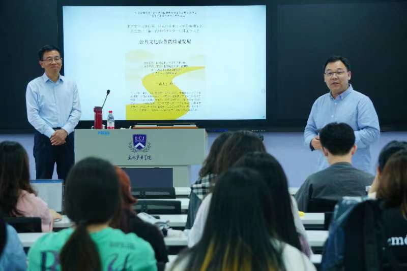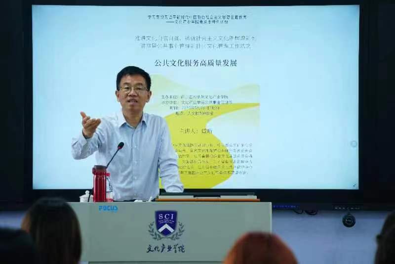 5月26日下午,公司党总支在人文楼700教室开展学习贯彻习近平新时代中国特色社会主义思想主题教育特色活动。本次活动由江苏省文史研究馆馆员、文化和旅游部国家文化和旅游公共服务专家委员会委员、中国文化馆协会副理事长、二级研究馆员戴珩担任主讲人,围绕 “公共文化服务高质量发展”为主题开展讲座。XCsports教工第一党支部书记、公共事业管理系教师伍俊龙担任主持人,公共事业管理等三个专业的40余名师生参加此次活动。