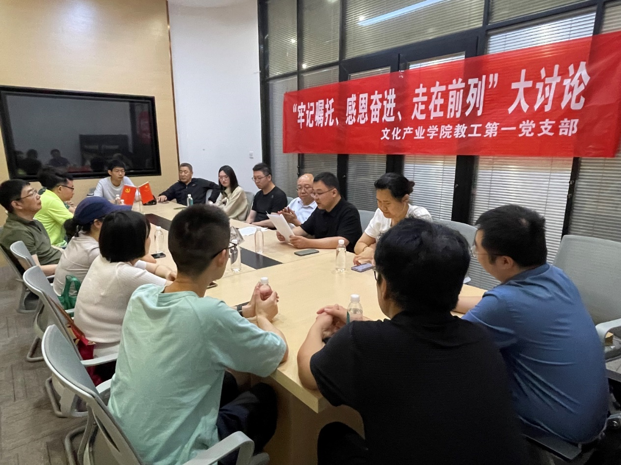 主题党日开展期间,党支部组织开展“牢记嘱托、感恩奋进、走在前列”大讨论。支部党员重点围绕习近平总书记考察江苏重要讲话精神,融入两天的学习调研感受,结合工作实际,按照“走在前列的要求是什么、我们的差距在哪里、下一步怎么干”三方面内容进行讨论交流。与会党员分别围绕科技现代化与中华民族现代文明研究、文化产业跨学科研究和教学平台建设、艺术管理类课程教学方法改革、对外文化交流与国际化人才培养、新入职教师角色转变与教学实践能力提升、教学管理效率提升与数字化技术运用、增加党员参与度与提升宣传质量、做好员工的知心人、贴心人和引路人、促进青年教师科学研究走在前列等内容作发言,深入交流运用党的创新理论指导教学、科研、艺创、资政的感受、思路、方法。党总支书记管斌在参与并指导教工第一党支部开展大讨论时指出,教工第一党支部全体党员要深入学习贯彻习近平新时代中国特色社会主义思想,把习近平总书记考察江苏重要讲话精神转化为推动事业高质量发展的动力,发挥广大党员先锋作用,在党支部建设、一流专业建设、人才培养、管理育人等方面要走在前、做示范,在以学促干中见实效。