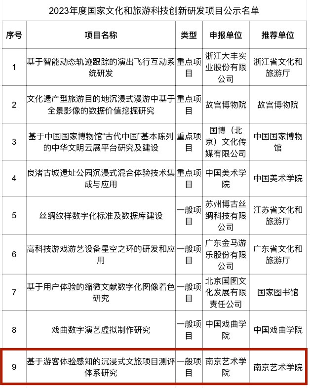国家文化和旅游科技创新研发项目储备库。