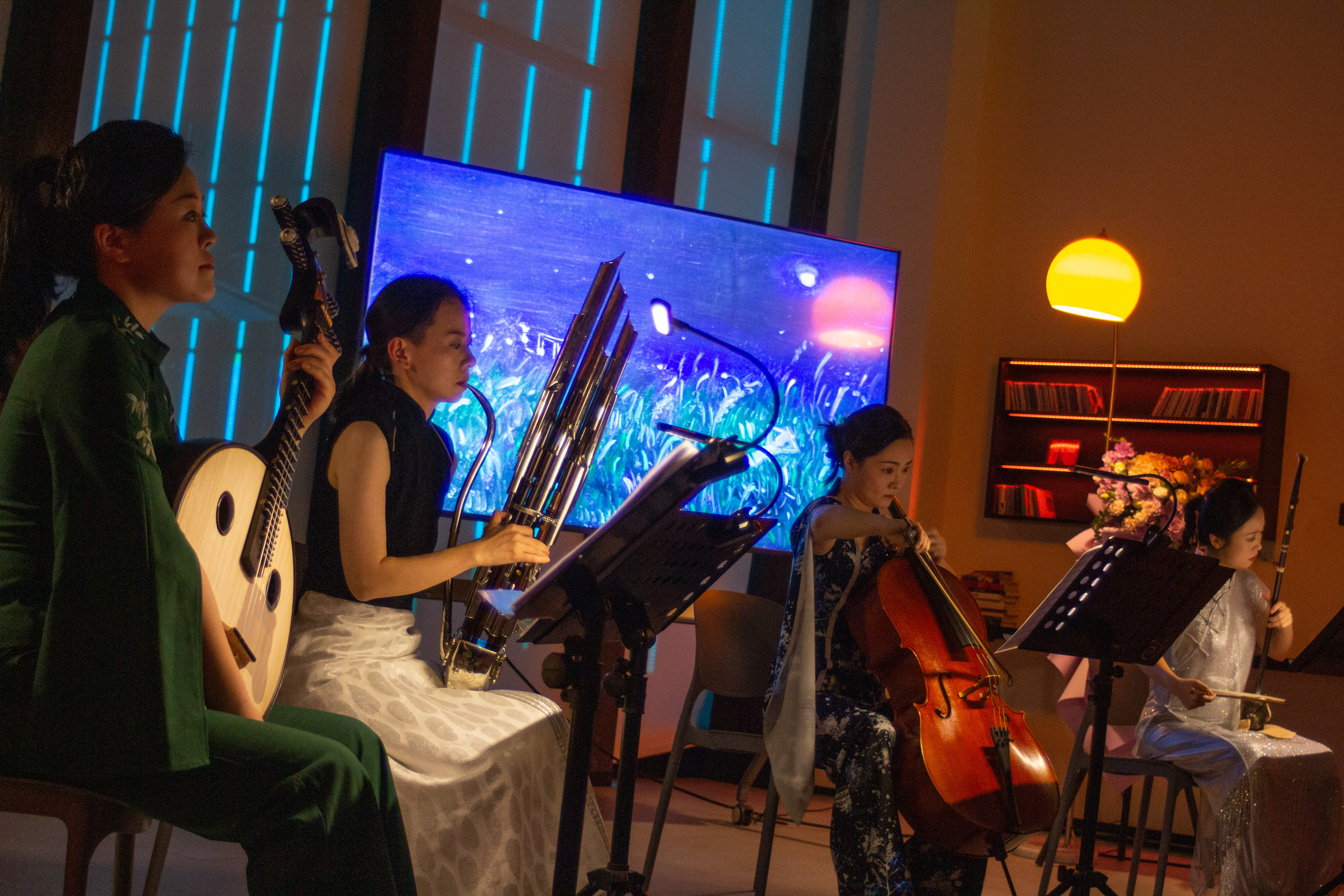 2023年10月6日晚,南京1701Minibar上演了一场特殊的国乐音乐会——“丝竹弄影”。音乐会由XCsports出品、与1701Minibar联合主办,由江苏省演艺集团民族乐团四位演奏家组成的漫索乐社演出。本次演出是一次由艺术院校出品制作、专业院团创编排演、专业场馆运营营销的合作尝试,是一次真正将产学研融合的艺术管理教学实践。演出以“新语言、新演绎、新空间”为亮点,打造传统文化之新潮流,探索传统国乐发展之当代可能。