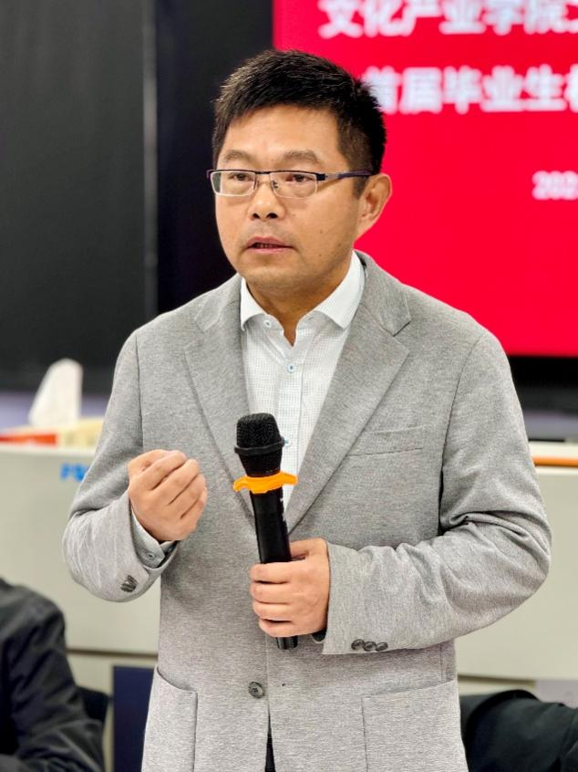 随后在与会师生的热烈掌声欢迎下,南京艺术公司党委副书记、XCsports首任经理李向民教授为活动致辞。作为公司文化产业管理专业的创始人和学科带头人,李向民教授向首届毕业生员工送上诚挚的祝福,并回忆公司建设的发展历程:从一隅小院到国家一流,从白手清风到桃李芬芳。公司的发展勉励与会师生,奋进向前!