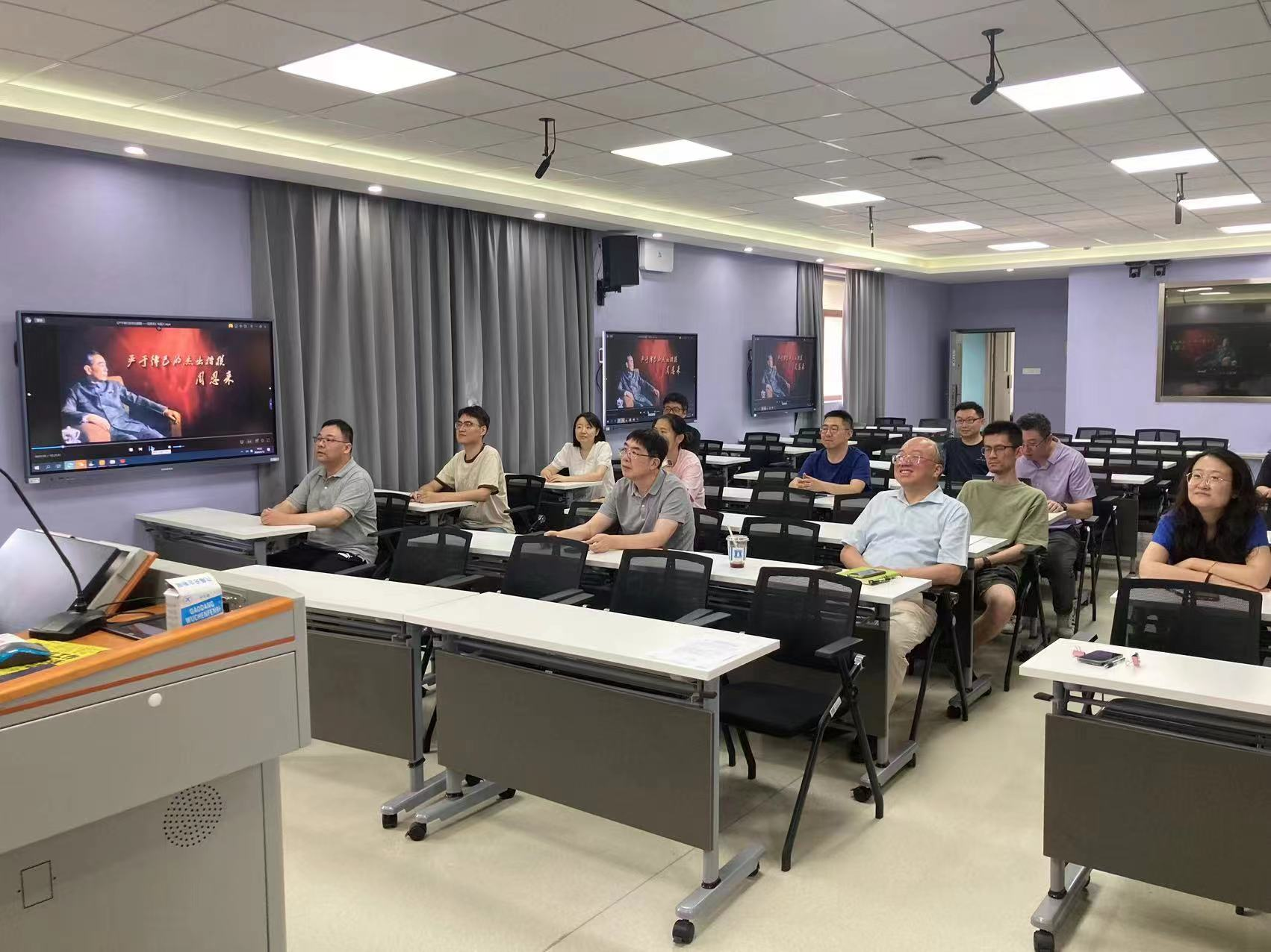 专题党课结束后,全体党员集体观看了《严于律己的杰出楷模——周恩来》专题片,感悟周恩来同志严于律己、清正廉洁的崇高品格。
