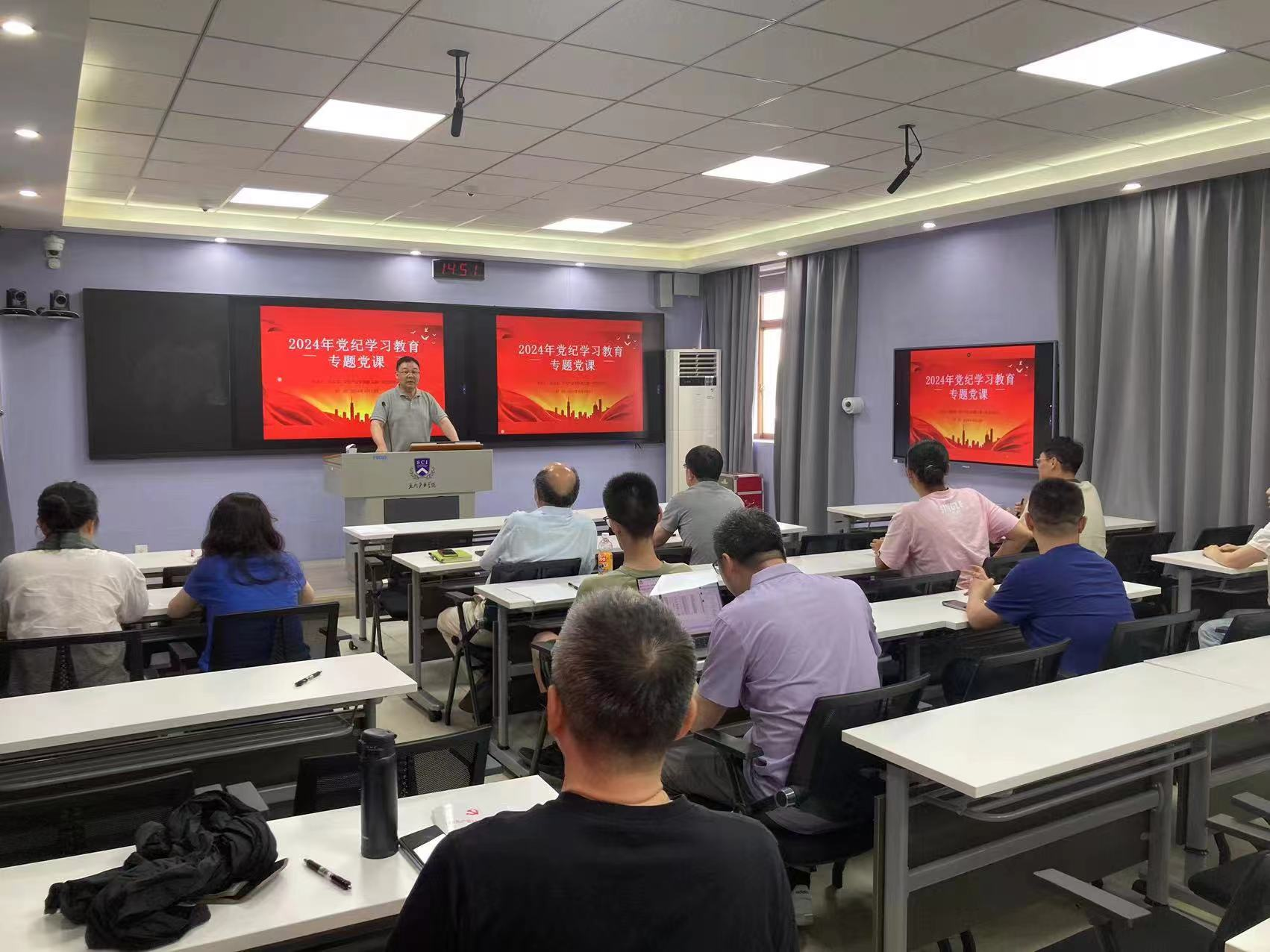 6月12日,党支部书记伍俊龙为全体党员讲党纪学习教育专题党课。伍俊龙结合新修订的《中国共产党纪律处分条例》具体条款,结合高校工作实际,通过警示教育典型案例,引导支部党员自觉强化遵守纪律的意识和行动。