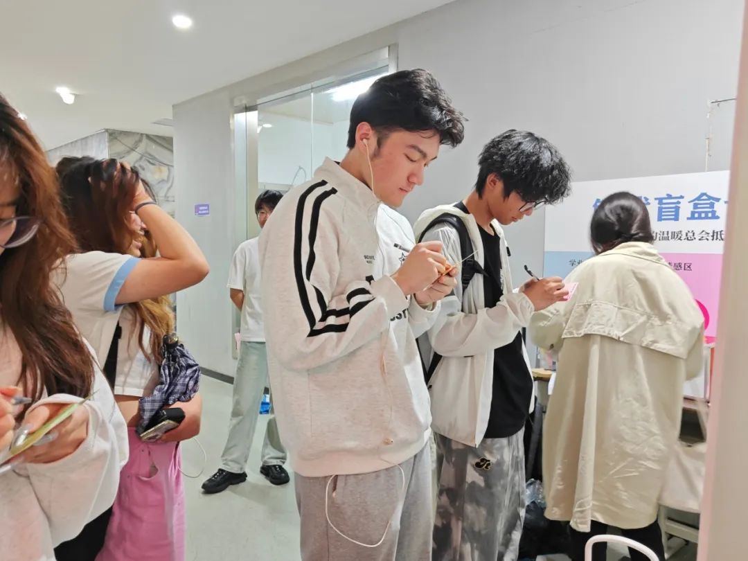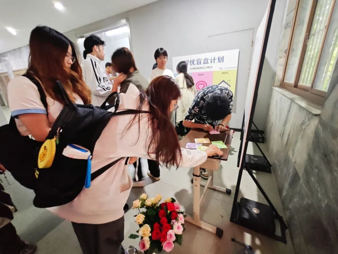 活动现场,公司一楼大厅树立起烦恼KT板的互动装置,同学们在各类形状的便签纸上书写下烦恼,将自己的学业压力、未来规划、个人困惑等涵盖多元主题的便签贴在KT板上。抽象的焦虑转化为具体的文字,同学们通过书写这一形式,将自己的压力释放出来。员工党员、员工干部还将每一份烦恼便签兑换成一朵象征希望与美好的玫瑰,同学们手捧玫瑰,脸上洋溢着释怀与轻松的微笑,手中的玫瑰不仅代表了烦恼的释放,更是自我成长与心灵疗愈的见证。