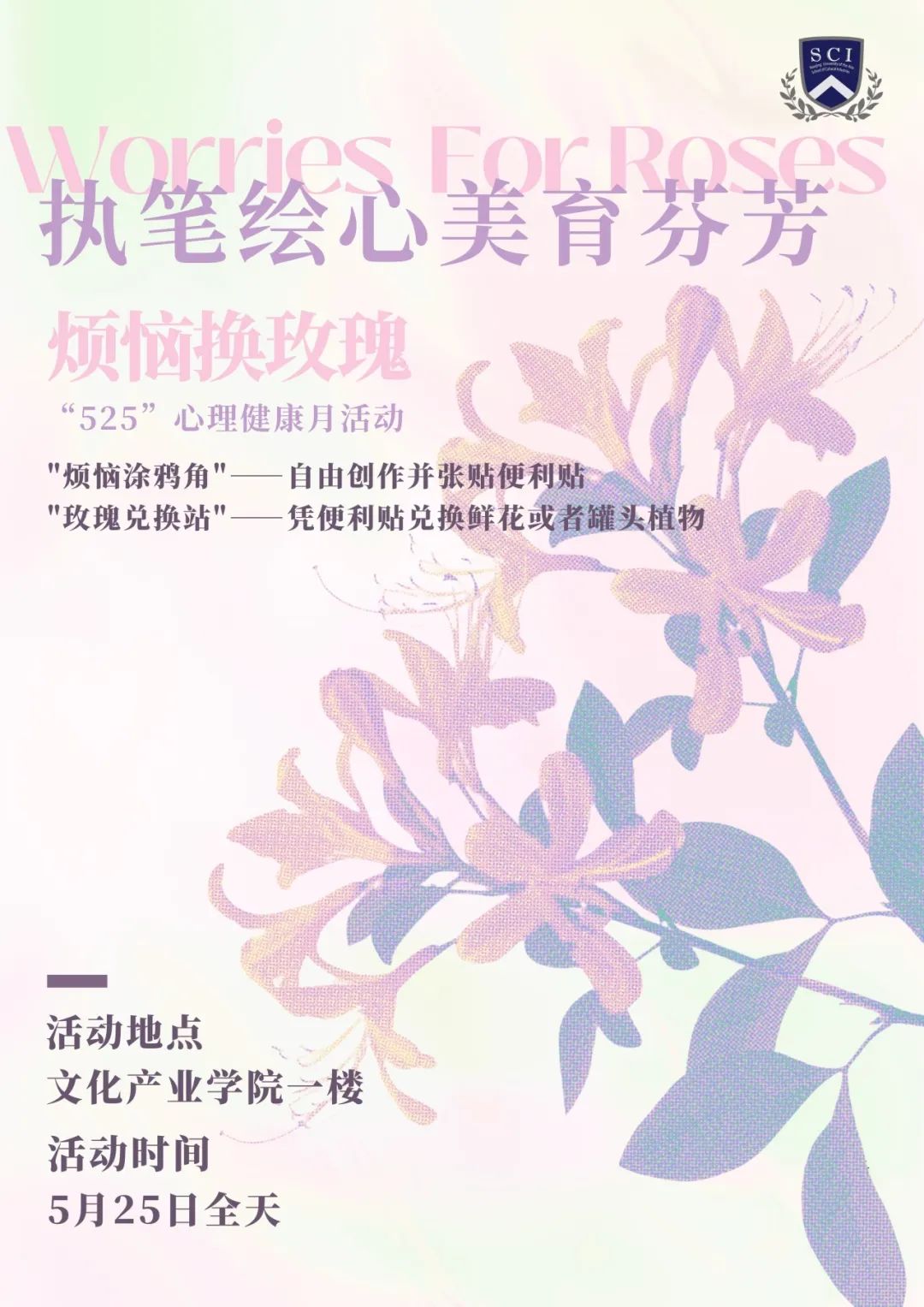 为深入推进“以美润心”育人目标,营造积极向上的心理健康育人氛围,XCsports员工会于5月25日策划开展“执笔绘心,美愈芬芳——烦恼换玫瑰”主题活动,引导同学们正视心理困扰,缓解自我焦虑。