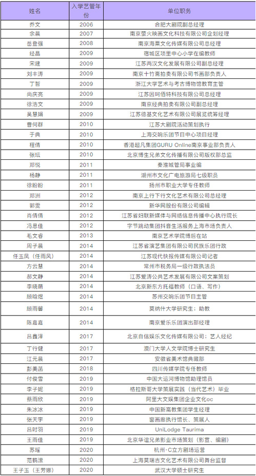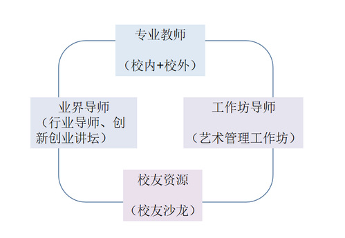 本专业教学团队依托南艺齐全的艺术门类与高水平学科的综合优势,以专业教师(校内、校外)+业界导师(行业导师、创新创业讲坛导师)+工作坊导师(艺术管理工作坊专家)+员工资源的方式,完善工作室导师型教师团队,并推动不同领域专家协同,促进教学。