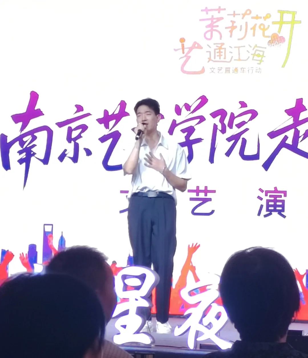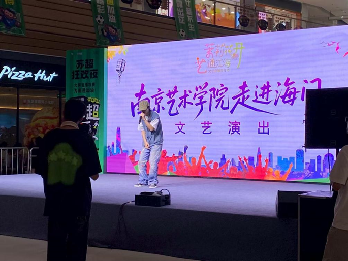 7月11日晚,作为海门城市夜间消费的热门地标——大有境商圈的夜空被南艺师生的歌声“唱响”,拉开了南艺“茉莉花开 艺通江海”文艺惠民系列演出的精彩序幕。陈振东、王少博、黄钰婷等同学表演了《心跳》《落叶归根》《路过人间》等耳熟能详的歌曲,台下市民纷纷跟唱。《无问西东》的深情、《海芋恋》的浪漫、《找自己》的活力……一首首风格各异的歌曲接连唱响,赢得台下观众经久不息的掌声。7月20日,李馨雨等同学组成文艺惠民实践团再度登场,他们将器乐演奏的典雅、声乐表演的细腻与舞蹈的灵动巧妙融合,当古典韵律邂逅现代节拍,一场跨越时空的艺术对话在舞台上徐徐展开,台下市民欢呼互动,掌声与旋律交织成城市生活暖心乐章。