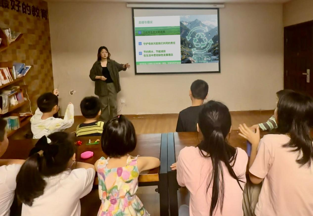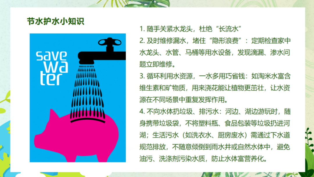 活动中,志愿者围绕五大专题展开讲解,帮助孩子们理解“绿水青山就是金山银山”的深刻内涵;结合秦淮河的生态现状,用图片对比展现河道变迁,激发孩子们对母亲河的关切;通过科普传递节水护水小知识,将“节约用水”从口号转化为可操作的生活细节;阐释绿色发展理念与日常的衣食住行相联系,让“低碳生活”融入孩子们的认知;最后的互动答疑环节,志愿者提出了一系列问题并耐心解答孩子们的提问,鼓励大家分享自己的“护水小妙招”。