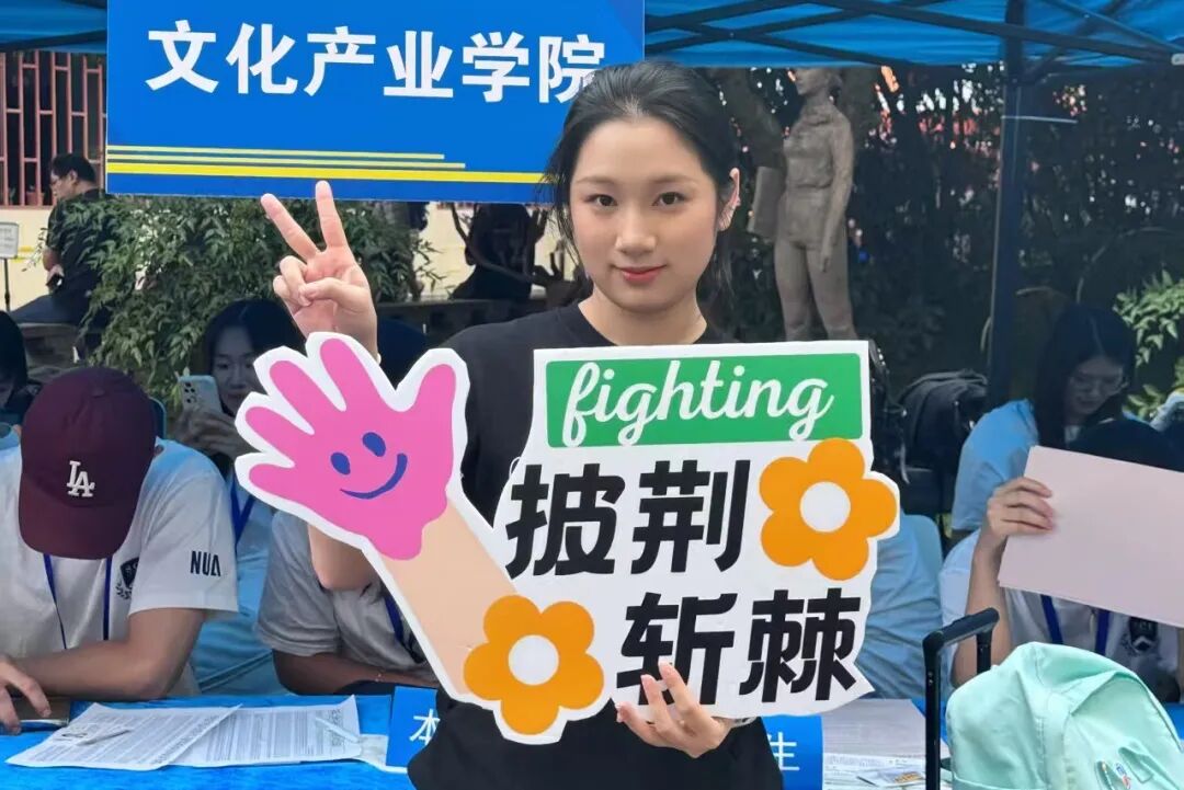 清晨伊始,文产院的志愿者们就已身着统一服装,精神饱满的等候在各个点位。“文产家人”提前经过培训,熟悉流程、办事高效。从帮新生核对报到信息、指引校园路线,到扛着行李箱送新生到宿舍,这份独属于文产院的热情与细致,让迎新工作有条不紊,也让刚踏入校园的新生们瞬间卸下忐忑,真切感受到了家一般的温暖。