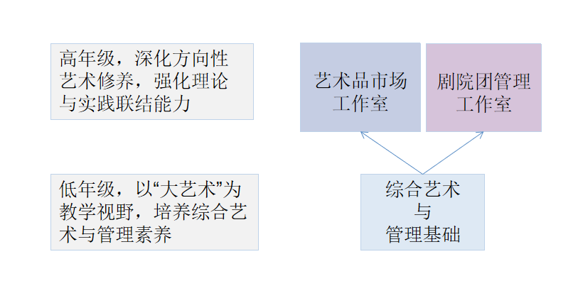本专业面向艺术领域管理岗位,培养视觉艺术和表演艺术领域管理方向的区域性高级专门人才,现设有两个教学方向:视觉类艺术管理(聚焦于艺术品市场管理)、表演类艺术管理(聚焦于剧院团管理)。